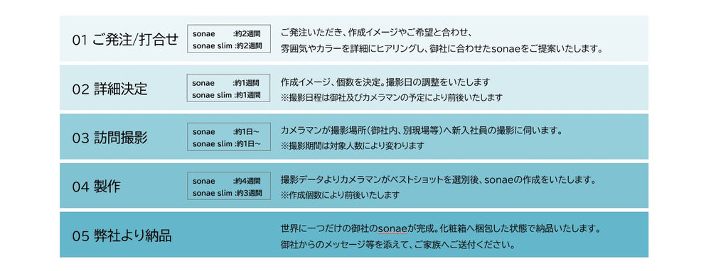 アートピースを入れた額縁タイプのsonaeに、新入社員一人づつの写真を入れ、御社ロゴもあしらった“世界に一つだけ”のオーダーメイド製品として作成いたします。